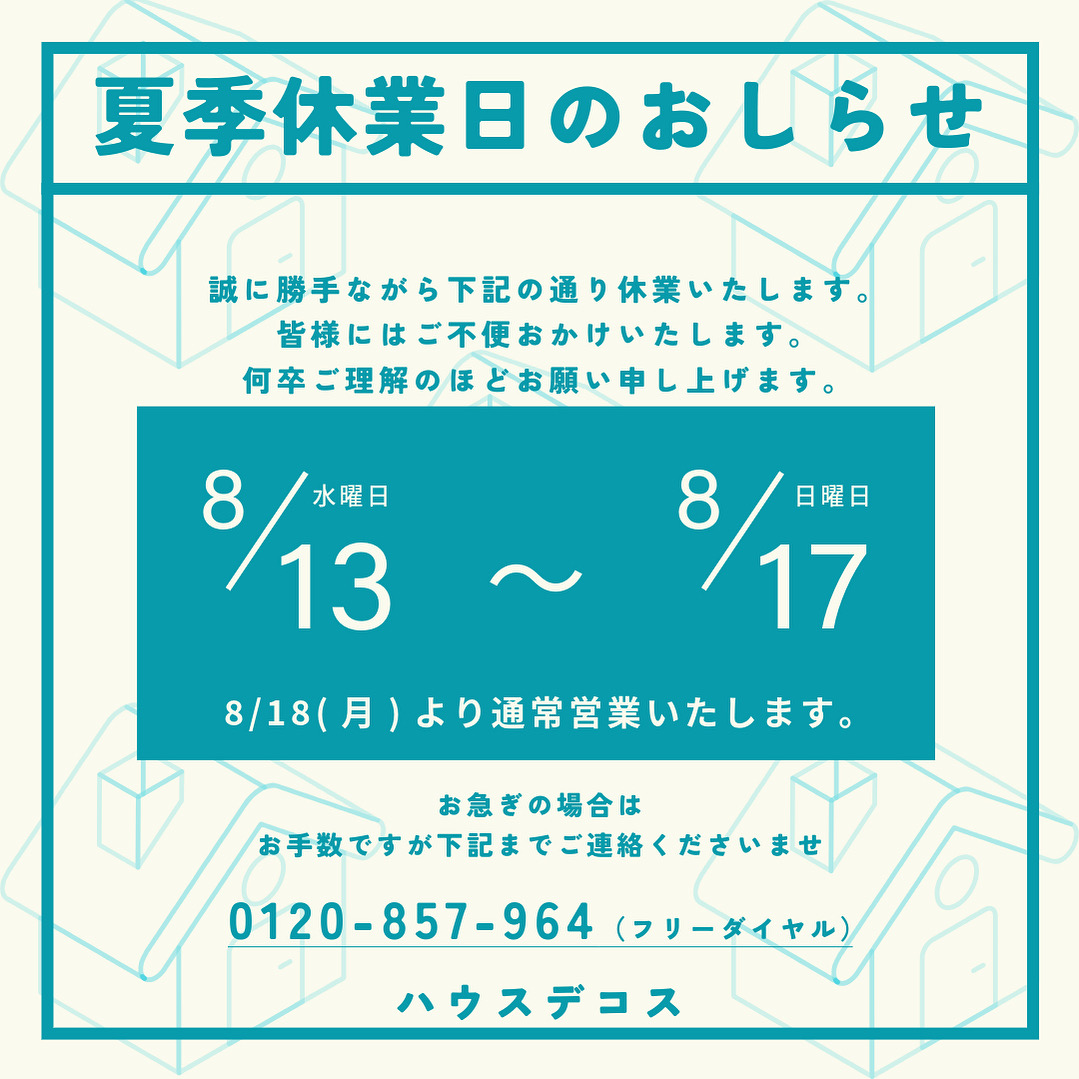 夏季休業中もお家のお困りごとのご相談はお受けしております